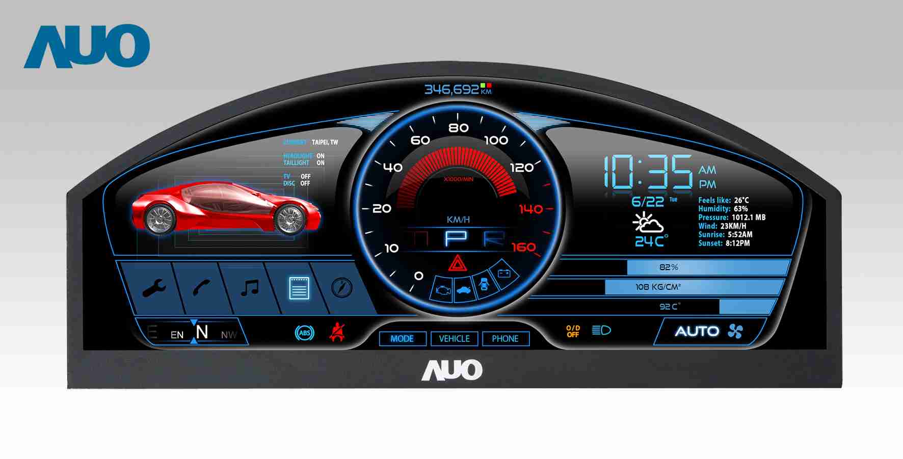 人生就是博 12.3吋超高解析异型切割车用面板,,,,拥有流线外观及精细画质
